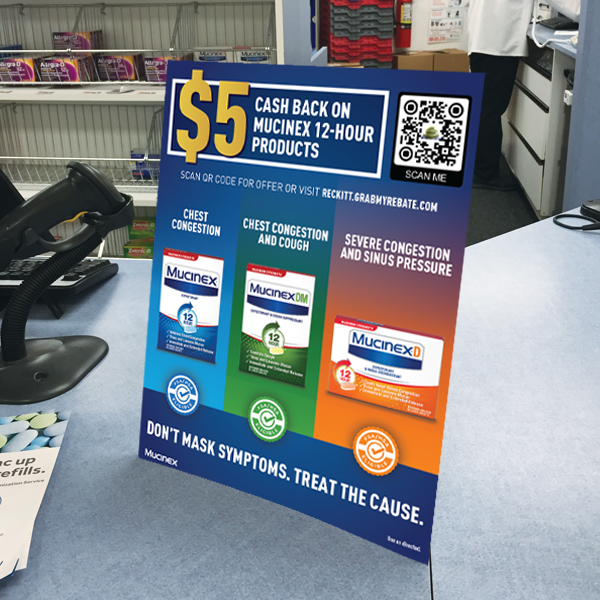 This is the "Mucinex Cash Back" insert needed for the RB-EBC-8511 Easel Back Sign Holder.