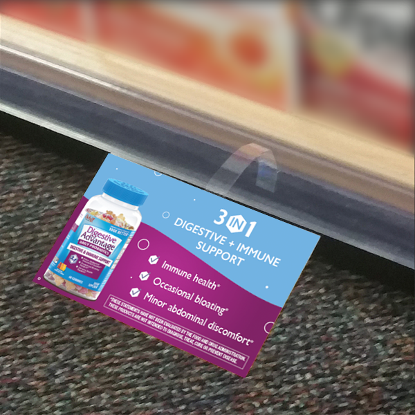 Digestive Advantage 4" W x 2.5" H, 4/0, Printed Sign - Can be used as a Flush Mount Sign or a Wobbler (main image of sign is shown with the EG-17-1-FMS, 2nd image is with sign used with 6060 wobbler)