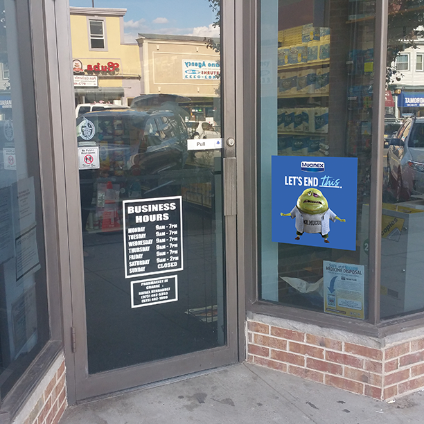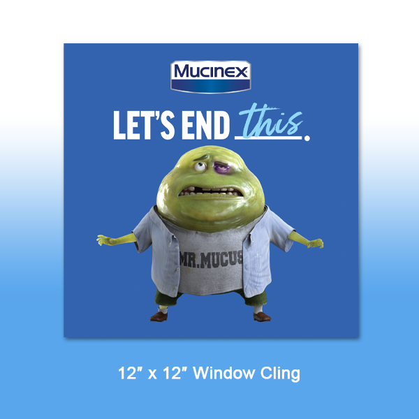Mucinex - Custom Printed PSV 4/4 Window Cling, 12" x 12"