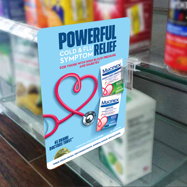 Mucinex High Blood Pressure 4.5" W x 6" H, 4/4, Printed Flag Position Signs, RB-DA-MAV