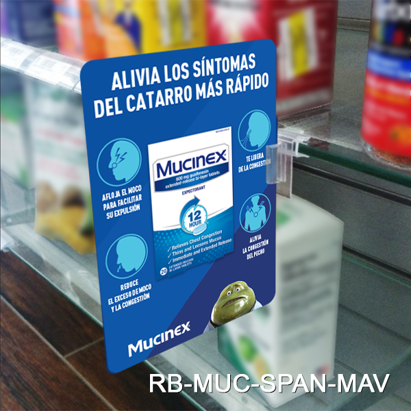 MUCINEX SPANISH LANGUAGE 4.5" W x 6" H, 4/4, Printed Flag Position Signs, RB-SPAN-MUC