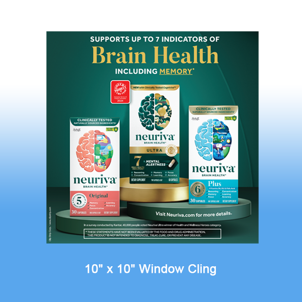 Neuriva "BRAIN HEALTH" Window Cling, 10" x 10", RB-NEU-10x10-WC